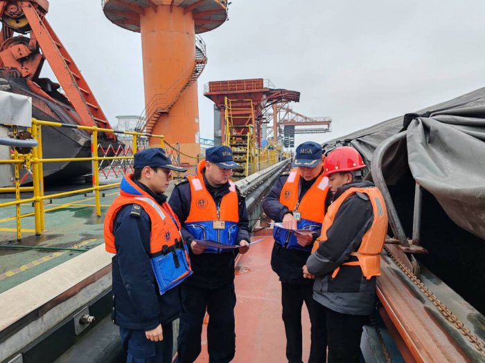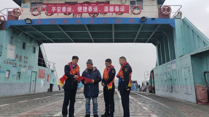 监督合力“融”,协同联动提质效。一是联合地方政府开展春运检查。华阳海事处联合望江县华阳镇人民政府、望江县长江综合行政执法大队等单位组成联合检查组,对辖区渡口渡船开展春运期间渡运安全大检查。在龙潭车渡口,检查组查看了交通主管部门投资修造的水泥坡道使用情况,叮嘱渡船经营人日常注意养护,斜坡上严禁停泊车辆。在磨盘车渡口,抽查了“九江车渡0168”停航期间人员值班情况。二是积极参加“蓝盾”清江行动。港区海事处任店大队与市水利局、市交通局、长航公安安庆局等多家单位联合开展清江行动。巡江过程中,检查组详细查看了安庆港区水域擅自违规移动、非法??康母骼嗖缮按榭?重点巡查了沿途非法采砂行为高发水域和敏感水域的采砂管理情况及涉砂船舶监管、??壳榭觯炕殖」芸?,保障重点水域通航畅通。(撰稿:彭伟,初审、复审:金佳,终审:郭雯)