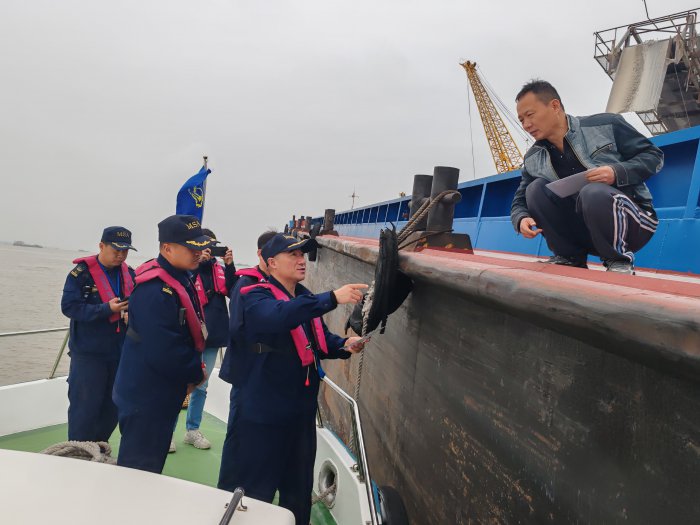 强化辖区形势研判,安全监管有真招。目前正处于春夏季节转换期,长江水位不断上涨,水流明显变快,水位交替变化频繁,对船舶航行安全带来较大影响?;艉J麓μ崆澳被?,加强重点船舶监管及通航秩序管理,提醒码头方注意防污染情况,避免粉尘过大等环保问题;并对作业船舶开展登轮一次检查和防污染专项检查,确保船舶适航。针对辖区渡运人数增加的情况,港区海事处青年靠前服务,主动前往渡口现场开展驻守工作。在现场志愿者们向旅客宣传安全知识,协助渡口维护上下船秩序,提醒渡船船员加强管理,避免因上下船秩序混乱而引发超载或其他意外。