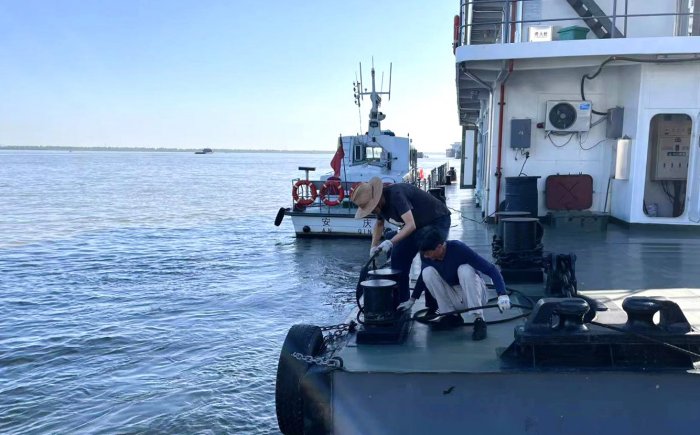 坚持目标导向,落细落实各项防控举措。充分发挥全要素水上“大交管”高效协同优势,统筹运用电子巡航和现场巡航方式,加强渡区、锚地、水工作业区等重点水域巡查,保障航区通航环境稳定畅通。大桥大队执法人员登上长江安庆河段治理工程施工作业船舶,重点检查是否按照水上水下活动许可证内容进行作业,是否落实通航安全和船舶防污染等保障措施。扫帚沟大队在马船沟锚地向船员分发《长江枞阳段汛期船舶安全锚、停泊建议书》,并通过高音喇叭提醒各船舶注意观察天气、水位变化。梅龙大队联合局安检专班人员开展海船安检,就发现缺陷督促船方及时纠正。