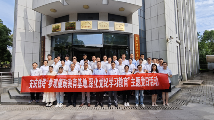 守牢初心明党纪,汲取力量勇担当。中国铁塔安庆市分公司利用主题党日活动,组织党员参观红色教育基地和廉洁警示教育基地,帮助党员干部守住初心、牢记使命。以安庆市委纪念邓稼先同志诞辰100周年系列纪念活动为契机,组织党员参观邓稼先故居、了解邓稼先同志“于国可歌、于家可泣”的感人生平,学习“热爱祖国、无私奉献,自力更生、艰苦奋斗,大力协同、勇于登攀”的“两弹一星”精神,涵养功成不必在我的精神境界、功成必定有我的历史担当。将纪律教育与主题教育相结合,研究制订“落实二十大 铁塔在行动”工作计划14条,从党纪学习中汲取磅礴力量、牢记使命担当,回答好“中国铁塔是什么,要干什么”的历史命题,用严的党纪推动公司高质量发展。