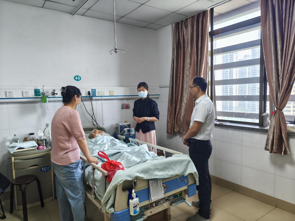 在病房内,陈礼向家属详细询问病情和治疗情况,得知退休干部目前病情稳定后,嘱咐他们要积极配合医院做好治疗,安心养病,争取早日康复。退休干部家属对组织的关怀和领导的探望表示衷心地感谢。