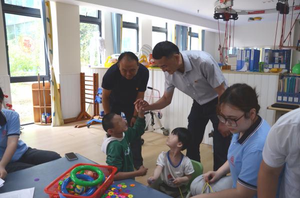 活动现场,市国防动员办党员们带着精心准备的物资来到福利院,与孩子们亲切互动,孩子们纯真的笑容、欢快的笑声,让现场充满了温馨与欢乐。在福利院工作人员的引导下,党员们参观了孩子们的生活、学习环境,详细了解了孩子们的身体和康复训练情况,并对福利院工作人员长期以来默默付出、悉心照料表示由衷敬意。