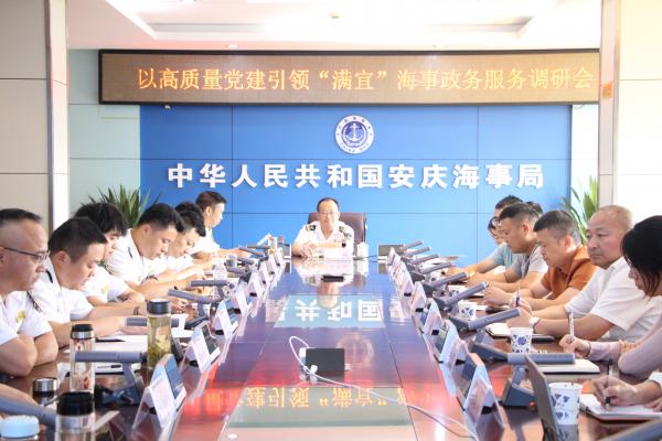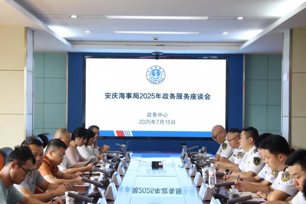 7月15日下午,安庆海事局2025年政务服务座谈会暨以高质量党建引领“满宜”海事政务服务调研会在局机关六楼会议室成功召开。会议旨在搭建政企高效沟通平台,倾听涉水企业心声,凝聚发展共识,共同探讨提升“满宜”海事政务服务品牌效能、优化长江航运营商环境的新路径。局分管领导、政务中心相关人员、各海事处业务副处长,与来自船员培训机构、船员服务机构及航运公司的代表齐聚一堂,共商服务大计?;嵋橛删终裰行闹魅位乒庾嬷鞒?。本次座谈会内容丰富、议程务实,紧紧围绕提升政务服务效能、解决企业群众办事痛点展开:
