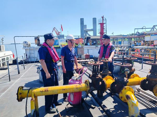 紧盯风险,防范安全隐患。面对高温季节船载危险货物运输的安全风险,大桥大队利用无人机巡航、实施监控危险品码头和船舶密集区,循环播放高温安全警示;华阳处“安澜”团队运用智慧海事系统,对危险品船舶实施从申报到离岗的全流程动态监管,确保作业安全,池州智管中心对风险船舶及时通过系统下派现场处置任务,排除辖区安全隐患。