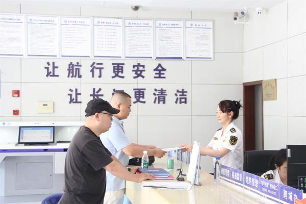 机制创新:从"传统管理"到"智慧服务"。创新推行"信用+便利洗舱"模式,为绿码船舶提供费用减免、绿色通道等便利举措,让信用成为看得见的实惠。同时,深化政务服务改革,实施"容缺受理+远程核验"机制,船舶登记业务实现"就近办、一次办"。东流海事处开展随船调研活动,将办公地点"搬"到船头甲板,在一线听意见、解难题、练本领,通过VHF甚高频与指挥中心实时测试信号稳定性,依托海事智管平台发送安全提示短信,确保应急信息传递"零延迟"。