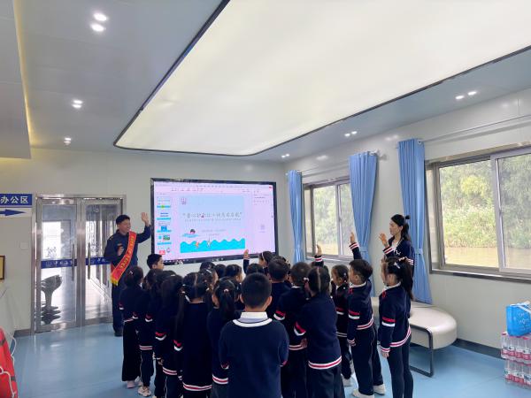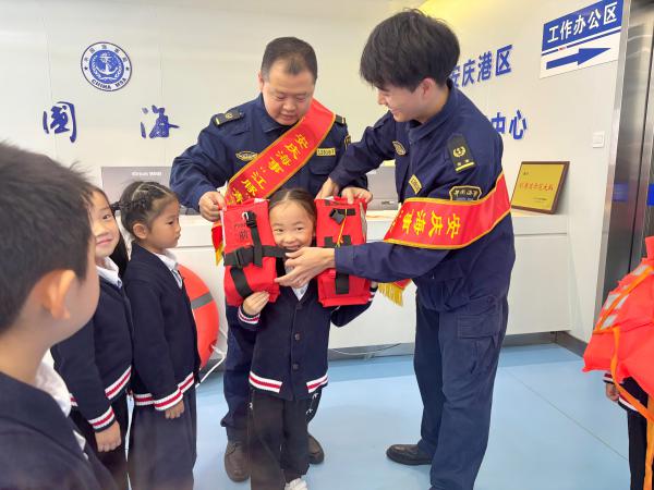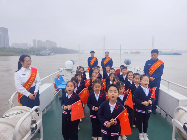 萌娃识江豚:趣味讲解点燃认知火花。活动一开始,海事青年志愿者利用可爱的江豚卡通图片和浅显易懂的语言,为小朋友们介绍了“长江小精灵”江豚的外形特征与生活习性。在轻松愉快的氛围中,志愿者引导小朋友们思考“怎样让江水更干净”“如何?;そ嗟募摇?,在幼小的心灵中播下环保的种子。安全初体验:救生设备互动学穿用。针对幼儿园小朋友的年龄特点,志愿者们设计了简单有趣的“安全小达人”体验环节。在志愿者“一对一”的帮助下,萌娃们兴奋地试穿了救生衣,亲手扣上搭扣、系紧带子,完成救生设备实操体验。艇上探秘:甲板课堂亲触长江脉搏。随着海巡艇缓缓启航,小糖艺术团的小朋友们童声激情演唱《强军战歌》开启了最期待的巡航体验。志愿者们用简单易懂的语言介绍基本的航行知识,引导小朋友们观察江水颜色、了解母亲河的故事。问答互动:安全意识扎根童心?;疃写┎辶巳の段蚀鸹方?,“落水了该怎么办”“坐船要注意什么”等问题引发了小朋友们的热烈响应。他们高举小手,用稚嫩而坚定的声音回答问题,在互动中巩固了所学知识。志愿者们还为每位小朋友准备了特色小奖品,鼓励他们争做“长江小卫士”。