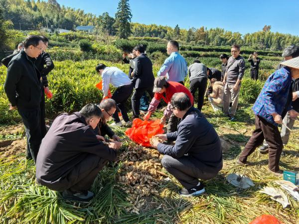 活动现场,参加主题日活动的党员干部俯身劳作,采挖生姜,并通过“以购代捐”方式踊跃认购。自2024年6月安庆市人大常委会机关驻村工作队进驻以来,机关已累计开展助农活动6次,创新推行“主题党日+消费帮扶”模式,带动销售生姜、茶叶、土鸡蛋、豆粑、茯苓等农产品超过20万元,惠及村民近100户。