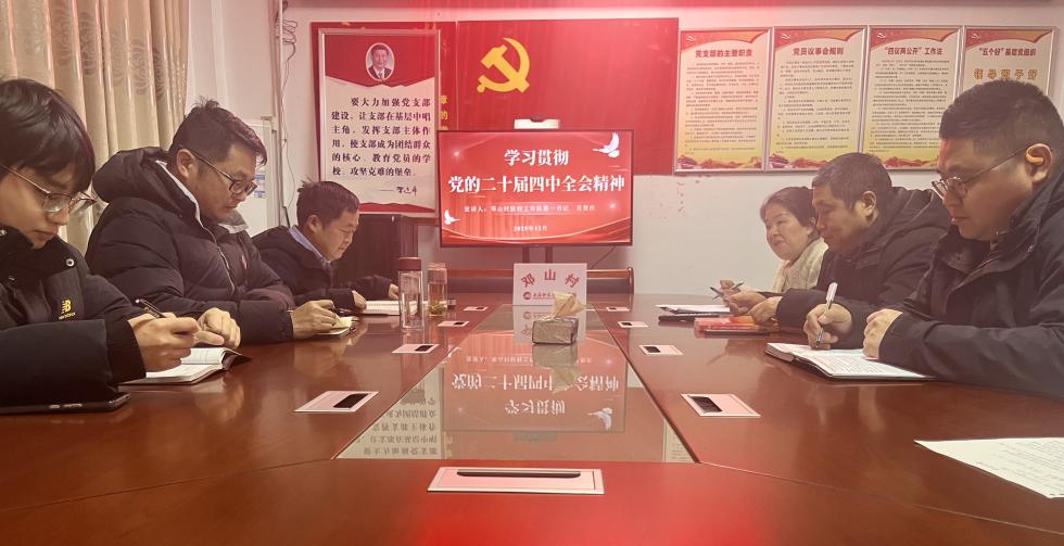 12月24日,邓山村召开党的二十届四中全会精神专题宣讲会,市公积金中心驻村工作队队长、驻村第一书记吴贺庆面向驻村工作队全体成员及村“两委”干部开展集中宣讲。