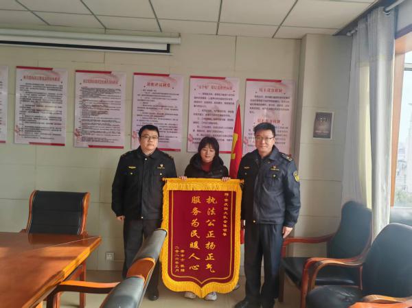 一面锦旗承载着群众的深切感激,一次“首微免罚”彰显着执法的温度与担当。1月14日,当事人徐某专程来到市交通执法支队四大队,将印着“执法公正扬正气 服务为民暖人心”的锦旗郑重交到执法人员手中,再三致谢大队在她人生低谷时给予的理解与关怀,让她深切感受到法治社会的温度。